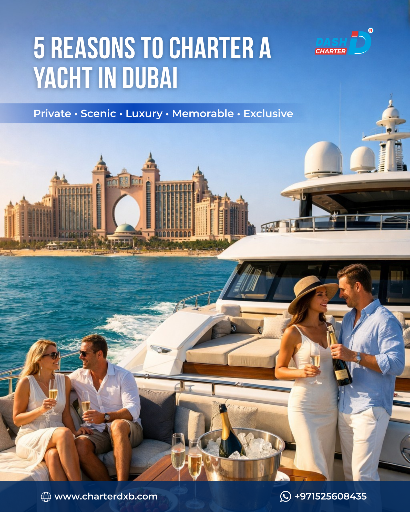 Chartering Dash 88 Feet was an absolute dream! The crew was professional, the yacht immaculate, and the views of Dubai were breathtaking